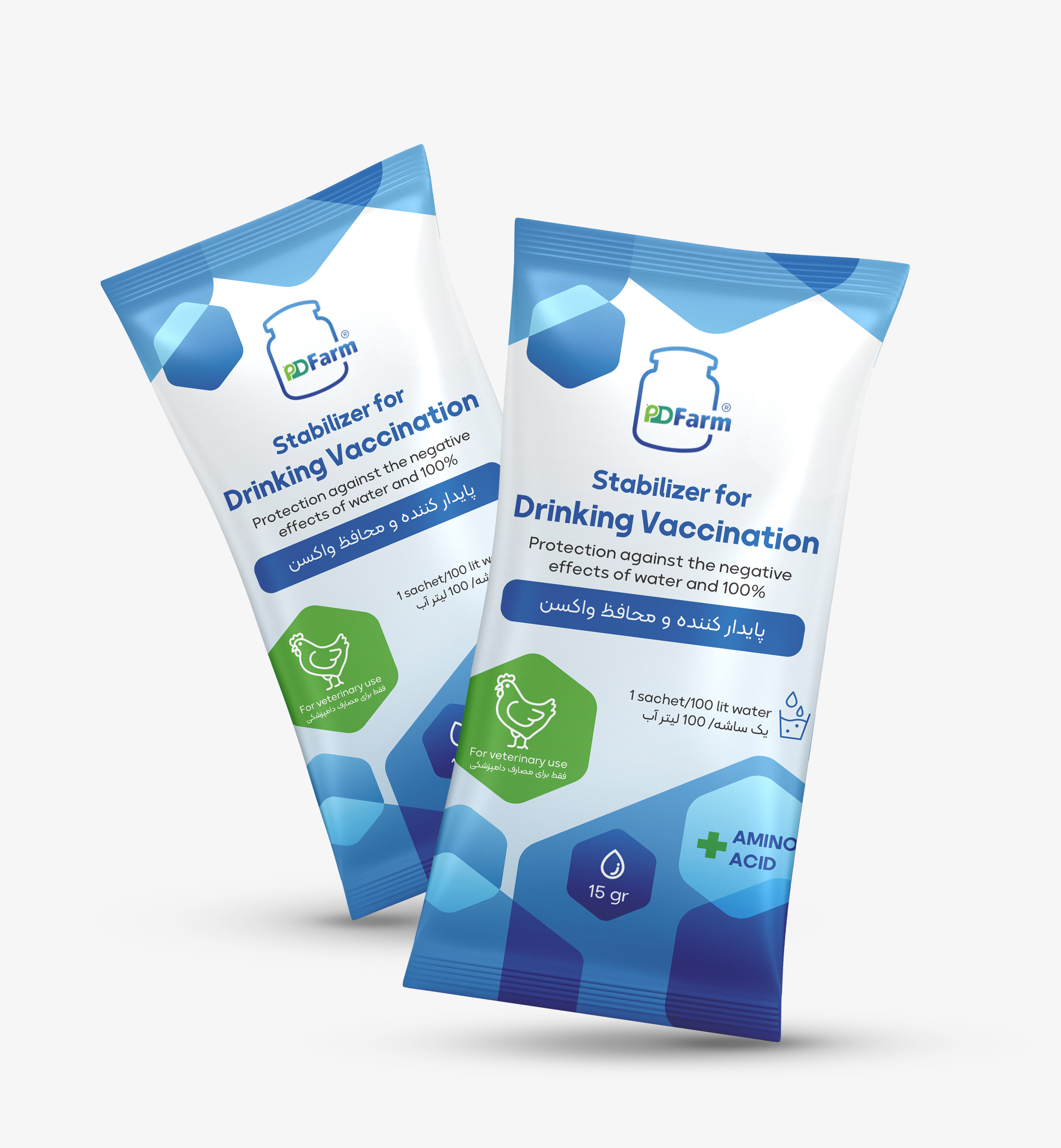 پایدارکننده واکسن PDFARM مکمل تخصصی برای افزایش اثربخشی واکسنهای آشامیدنی و اسپری در طیور است. این محصول با حذف ترکیبات اکسیدکننده (مانند کلر، پراکسید ها، و سایر مواد ضدعفونی)، شلاتهکردن فلزات سنگین مخرب مانند آهن و منیزیم، و تنظیم دقیق pH آب، از ویروسها و باکتریهای واکسن محافظت میکند. وجود رنگ نشانگر، یکنواختی مصرف در گله را بهبود میدهد. قابل استفاده برای واکسنهای ویروسی و باکتریایی، با عملکرد پایدار در آبهای مختلف، و دارای مجوز رسمی از سازمان دامپزشکی کشور می باشد و دارای گواهی ثبت اختراع و تائیدیه علمی از پارک علم و فناوری گیلان و کرمان، دانشکده دامپزشکی تهران می باشد.